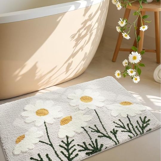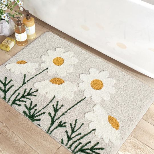 🌼 “Fluffy Bloom Bliss™ – Ultra-Soft Daisy Flower Mat for Bathroom 🌸 | Non-Slip 🌿 | Machine Washable 🌀 | Absorbent & Cozy Comfort Step”