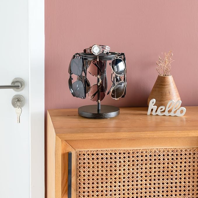 🔄 360° Rotating Feature – Easily spin the organizer to access your sunglasses, bracelets, or watches.
